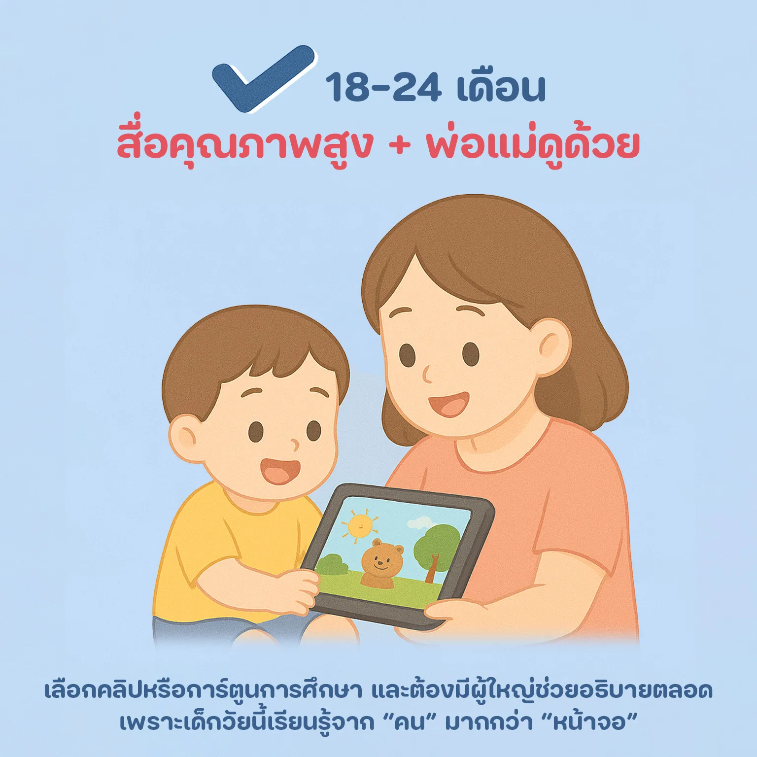 18-24 เดือน: เริ่มใช้สื่อคุณภาพ + พ่อแม่ต้องดูด้วย