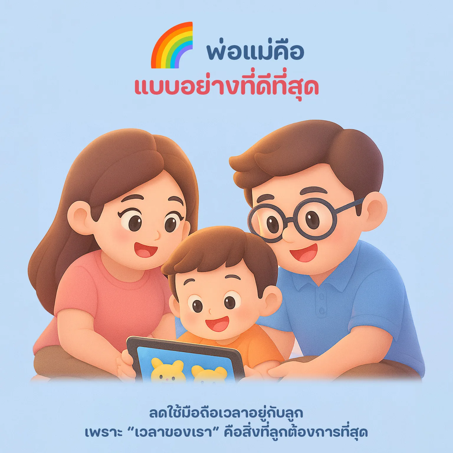 สุดท้าย ไม่ว่ากฎจะดีแค่ไหน เด็กจะทำตาม ตัวอย่างที่เห็น มากกว่า คำสั่งที่ฟัง ถ้าพ่อแม่วางมือถือขณะเล่นกับลูก เด็กจะรู้สึกได้รับความสนใจอย่างเต็มที่ และเรียนรู้ทักษะการเล่น การสื่อสาร และความผูกพันทางอารมณ์ได้ดีกว่า